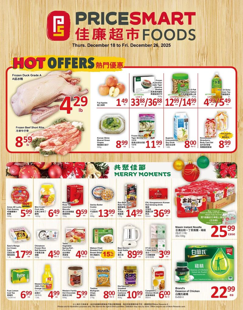PriceSmart Foods Flyer 大温本周特价 12月18日 – 12月26日2025. 查看最新的超市优惠信息,包括食品、家居用品、儿童用品等。
