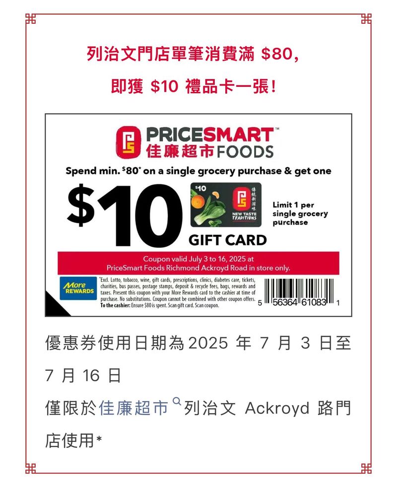 佳廉超市 PriceSmart Foods Flyer 大温本周特价 7月3日 – 7月9日2025