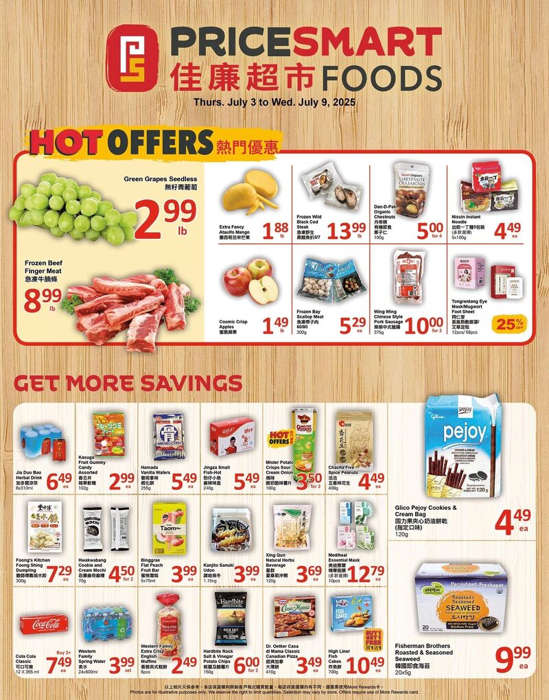 PriceSmart Foods Flyer 大温本周特价 7月3日 – 7月9日2025. 查看最新的超市优惠信息,包括食品、家居用品、儿童用品等。