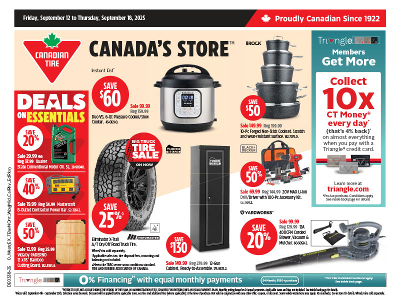 加拿大轮胎 Canadian Tire Flyer 大温本周特价 9月12日 – 9月18日2025