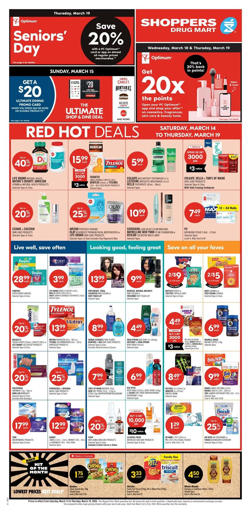 启康药房 Shoppers Drug Mart Flyer大温本周特价 3月14日 – 3月19日2026. 探索最新的超市优惠信息,包括化妆品、美妆用品、家居用品、儿童用品等,享受更多折扣和优惠。