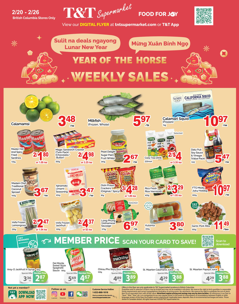 T&T Supermarket Flyer 大温本周特价 2月20日 – 2月26日2026. 探索最新的超市优惠信息,包括新鲜食品、家居用品、儿童用品等,享受更多折扣和优惠。