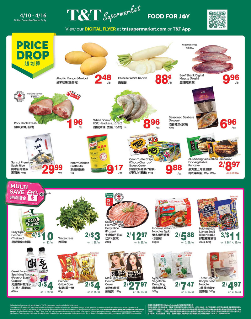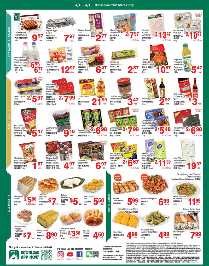 T&T Supermarket Flyer 大温本周特价 4月10日 – 4月16日2026. 探索最新的超市优惠信息,包括新鲜食品、家居用品、儿童用品等,享受更多折扣和优惠。