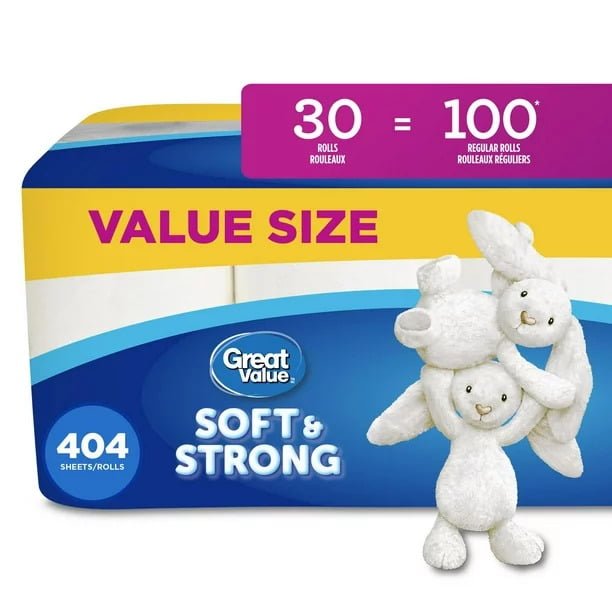 Great Value,卫生纸,30 份家庭装等于 100 卷,每卷 404 张纸巾 $6.97 (门市每人限购2件)