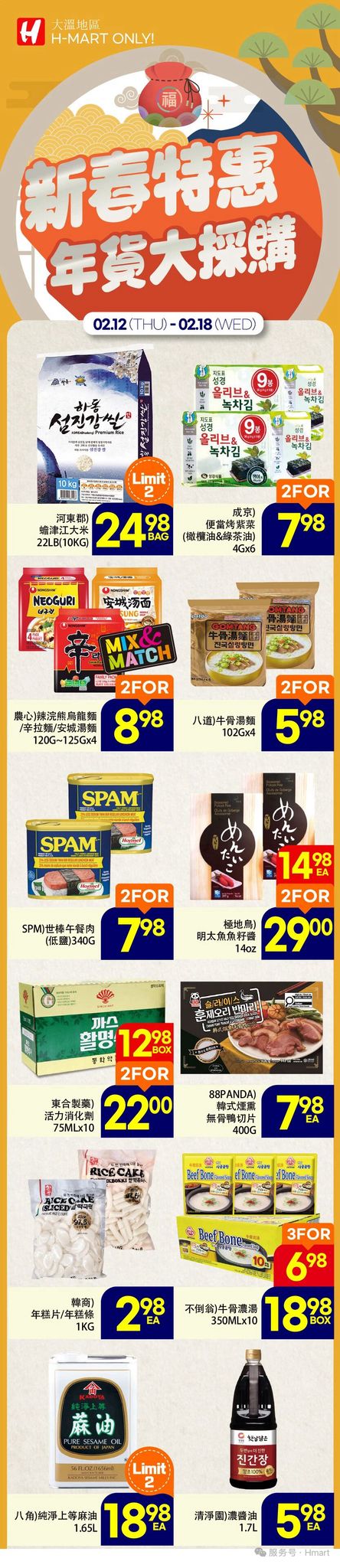 韩亚龙 HMart 大温本周特价 2月12日 – 2月18日2026