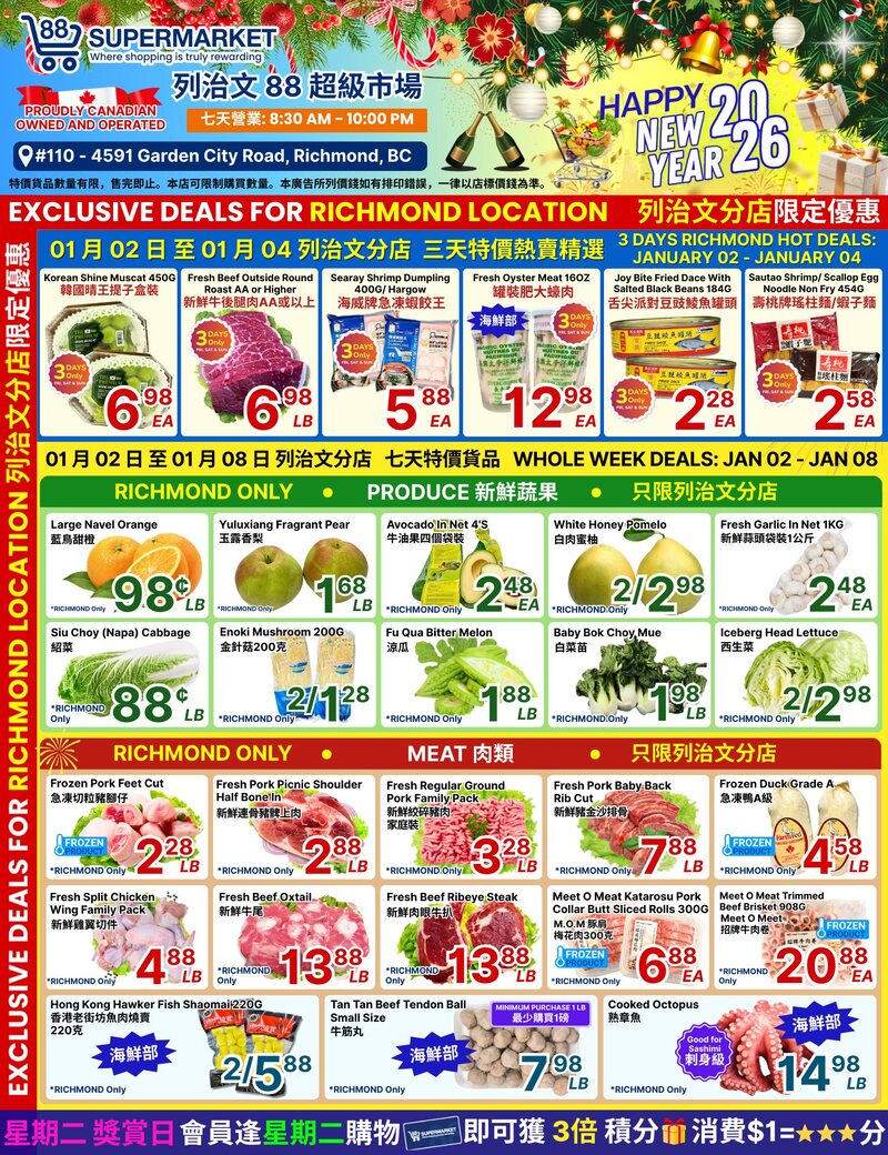 88 Supermarket Flyer 大温本周特價 1月2日 – 1月8日2026