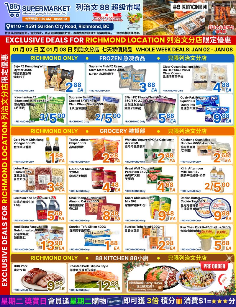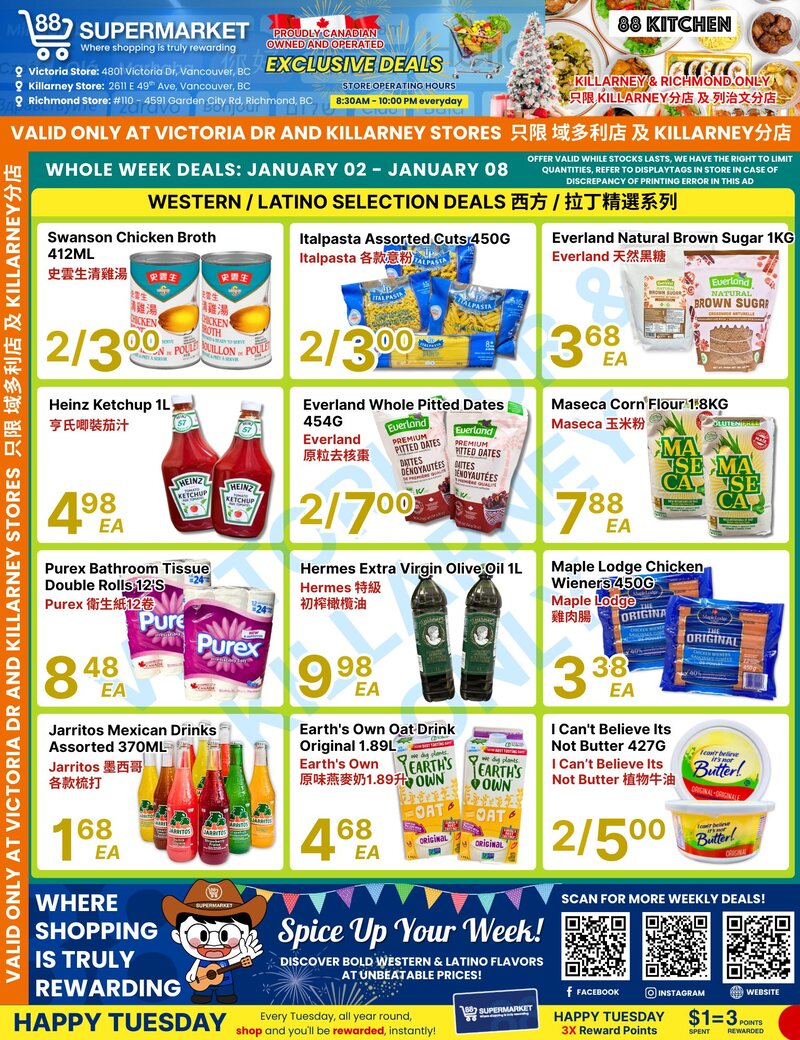 88 Supermarket Flyer 大温本周特价 1月2日 – 1月8日2026
