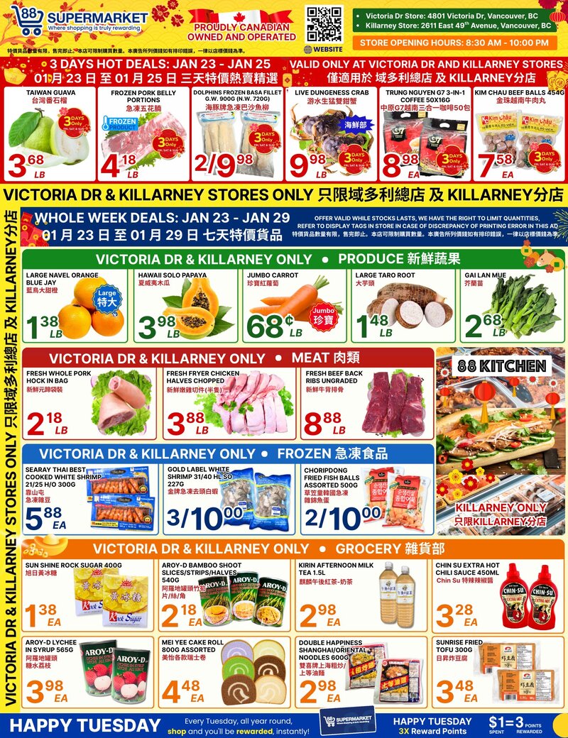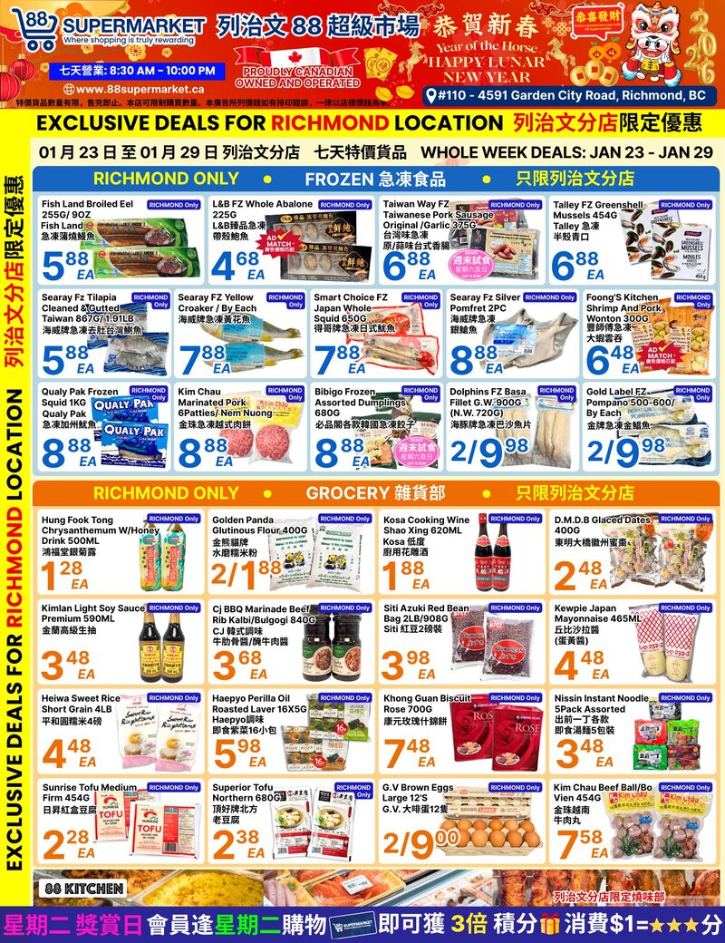 88 Supermarket Flyer 大温本周特價 1月23日 – 1月29日2026