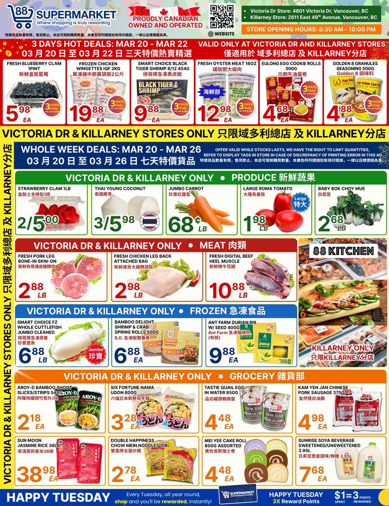 88 Supermarket Flyer 大温本周特價 3月20日 – 3月26日2026